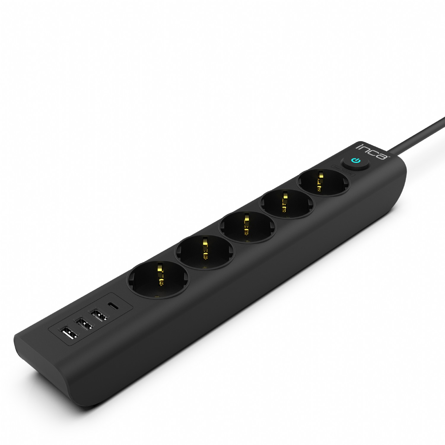 İnca IPW-44TU 5 port 2x USB+ Type-C Akım Korumalı Led Tuşlu Priz 1.5M – Siyah